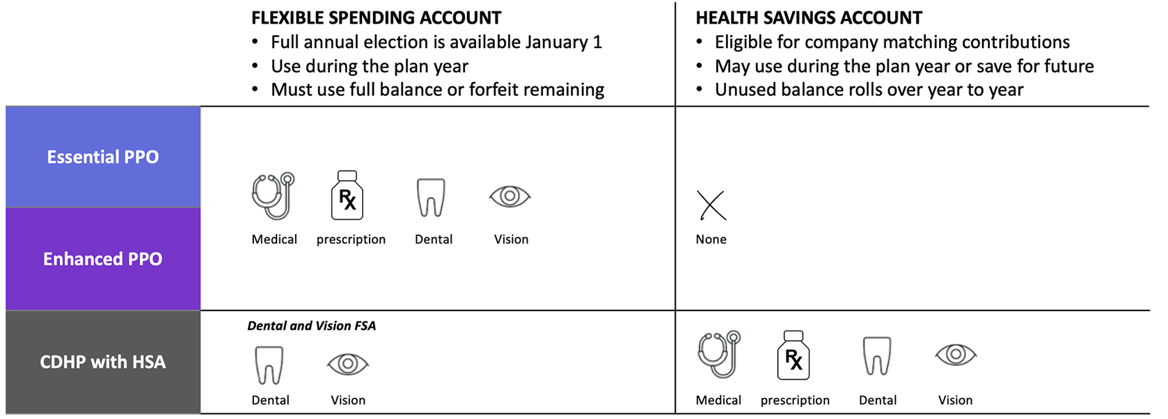 You can contribute to both of these accounts on a pre-tax basis. But, bottom line, if you’d like to have an HSA, you must choose the United CDHP with HSA or Kaiser CDHP with HSA. A consumer-directed plan is the only plan type that meets the IRS’s qualification of being a high-deductible health plan (CDHP). If you choose the United CDHP with HSA or Kaiser CDHP with HSA, you may also open a Dental and Vision FSA — because you’ll use your HSA for medical and prescription expenses.